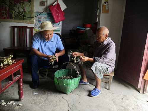 楊坤山在貧困戶家?guī)兔φ矶菇。三星村供圖