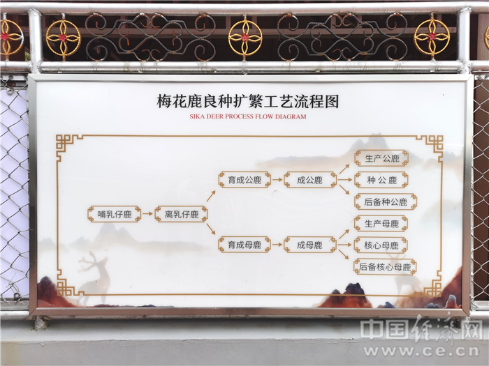 梅花鹿良種擴(kuò)繁工藝流程圖。經(jīng)濟(jì)日?qǐng)?bào)-中國(guó)經(jīng)濟(jì)網(wǎng)記者宋雅靜/攝