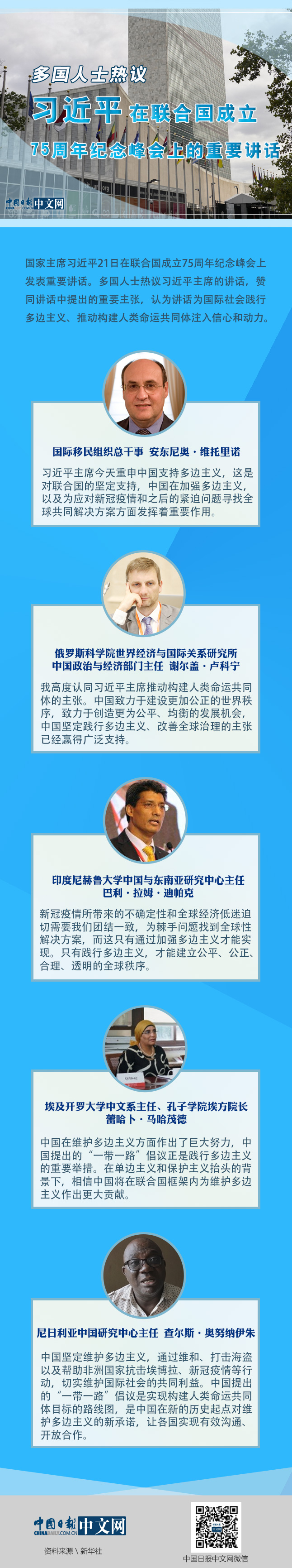 圖解|多國人士熱議習近平在聯(lián)合國成立75周年紀念峰會上的重要講話
