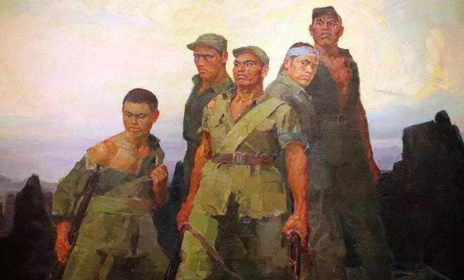 24日夜色降臨,在完成掩護(hù)群眾突圍的任務(wù)后,連長(zhǎng)帶著七連指戰(zhàn)員沿著盤陀路向外撤離, 為了不讓敵人發(fā)現(xiàn)連隊(duì)轉(zhuǎn)移方向,5名戰(zhàn)士吸引敵人火力, 繼續(xù)掩護(hù)作戰(zhàn)。馬寶玉、葛振林、胡德林、胡福才、宋學(xué)義五人借著月光, 將團(tuán)部留下的幾箱手榴彈分束扎捆, 然后隱藏在棋盤陀最險(xiǎn)要的“閻王鼻子”和“小鬼臉兒”兩個(gè)據(jù)點(diǎn)。