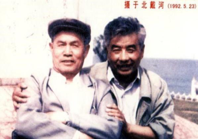 兩個老戰(zhàn)友:《我是一個兵》詞曲作者陸原(左)、岳侖1992年在北戴河合影。