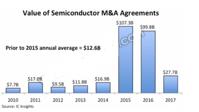 半導(dǎo)體并購活動在2019年的總額同比增長22%,達(dá)到317億美元。
