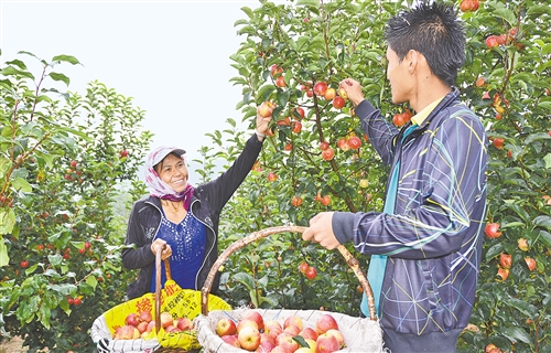 天來(lái)村地少山多,種果樹(shù)最合適,可是種啥品種村民意見(jiàn)不一致。付寶庫(kù)自己掏錢請(qǐng)果樹(shù)專家來(lái)村“號(hào)脈”出方子!澳憧催@種雞心狀的小蘋(píng)果又脆又甜又好看,國(guó)際銷路好,最可人的是成熟快,比一般蘋(píng)果能早上市1個(gè)月。憑這個(gè)時(shí)間差我們就掙錢了。”付寶庫(kù)先在自家和村干部家試種的成功效應(yīng)一下子說(shuō)服了全村群眾,果樹(shù)面積由幾十畝增加到8000畝,年收入達(dá)1300多萬(wàn)元!胺N果樹(shù)是個(gè)慢活,得好幾年才見(jiàn)結(jié)果,貧困戶失敗不起,只有黨員干部沖在前面做出樣子才行!备秾殠(kù)挺會(huì)總結(jié),農(nóng)村富不富,關(guān)鍵看支部;支部強(qiáng)不強(qiáng),要看“領(lǐng)頭羊”。