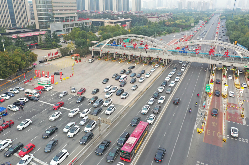 車(chē)輛在S9902新元高速石家莊裕華路口通行(10月8日攝,無(wú)人機(jī)照片)。新華社記者 朱旭東 攝