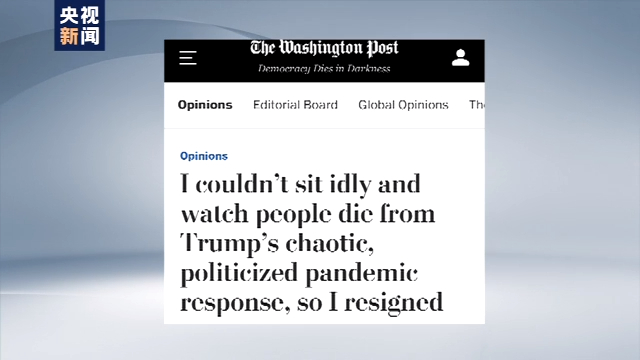 美前衛(wèi)生官員:美國政府將疫情政治化導(dǎo)致成千上萬人本可避免的死亡