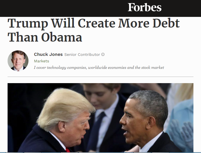 △《福布斯》稱,特朗普將比奧巴馬創(chuàng)造更多的債務(wù)