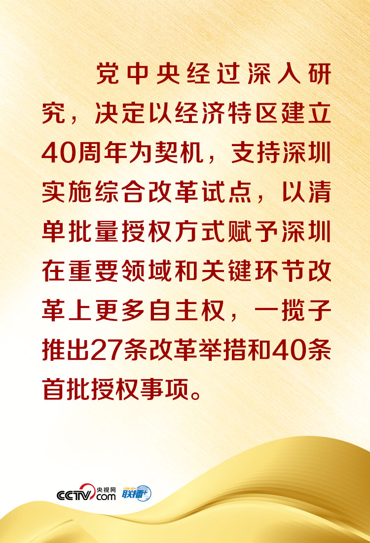 聯(lián)播+40年春風(fēng)化雨,40年春華秋實(shí)。“深圳等經(jīng)濟(jì)特區(qū)的成功實(shí)踐充分證明,黨中央關(guān)于興辦經(jīng)濟(jì)特區(qū)的戰(zhàn)略決策是完全正確的。經(jīng)濟(jì)特區(qū)不僅要繼續(xù)辦下去,而且要辦得更好、辦得水平更高!
