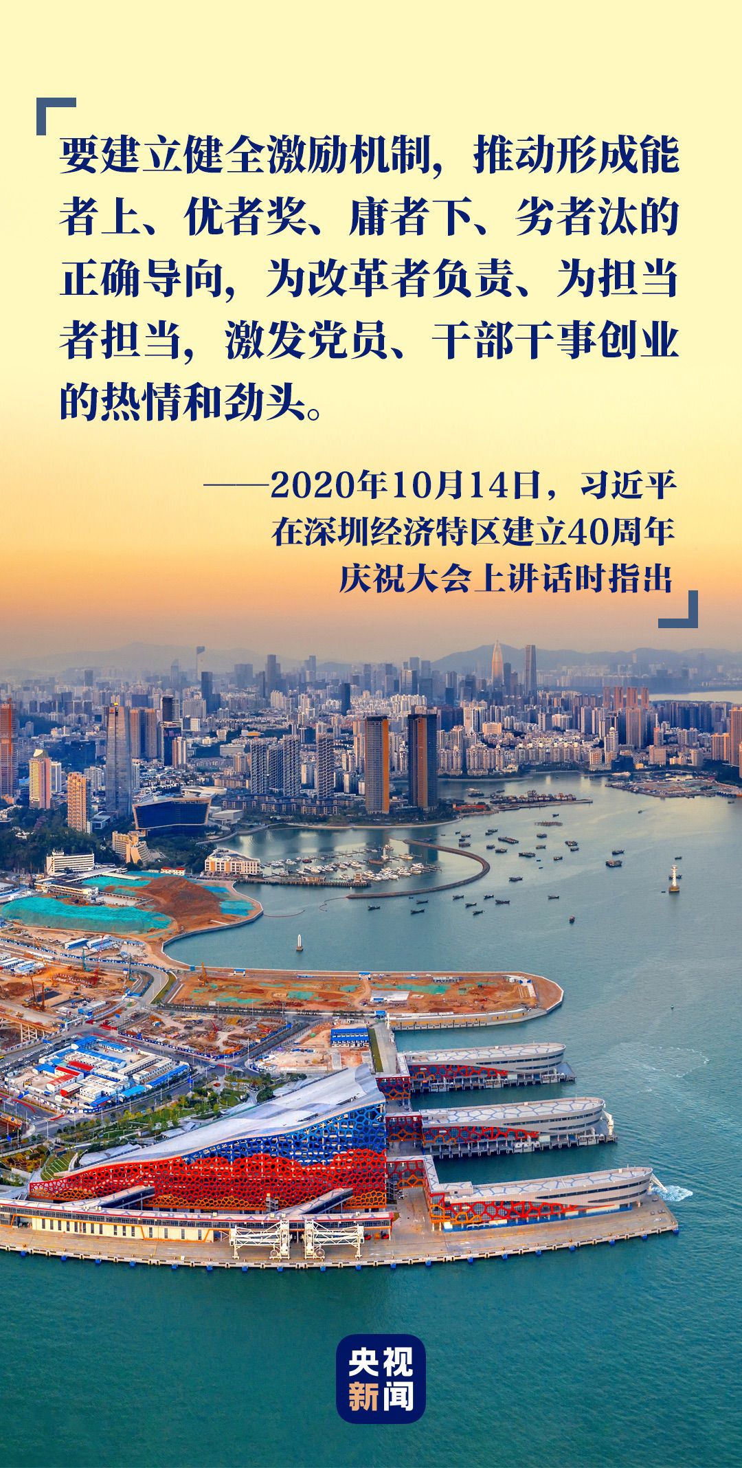 四十年波瀾壯闊,四十載滄桑巨變。在慶祝大會上,習(xí)近平總書記對經(jīng)濟(jì)特區(qū)建設(shè)提出了更高的期望——永葆“闖”的精神、“創(chuàng)”的勁頭、“干”的作風(fēng),努力續(xù)寫更多“春天的故事”,努力創(chuàng)造讓世界刮目相看的新的更大奇跡。