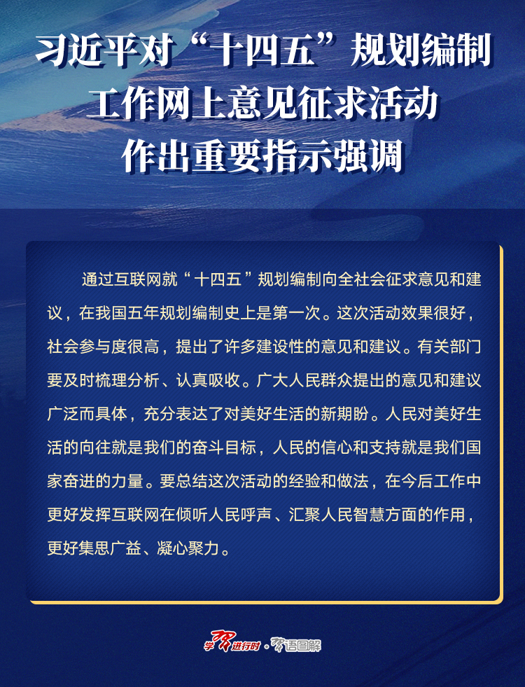 前不久,“十四五”規(guī)劃編制通過(guò)互聯(lián)網(wǎng)向全社會(huì)征求意見(jiàn)和建議,這在我國(guó)五年規(guī)劃編制史上是第一次。這次活動(dòng)社會(huì)反響熱烈,累計(jì)收到網(wǎng)民建言超過(guò)101.8萬(wàn)條。