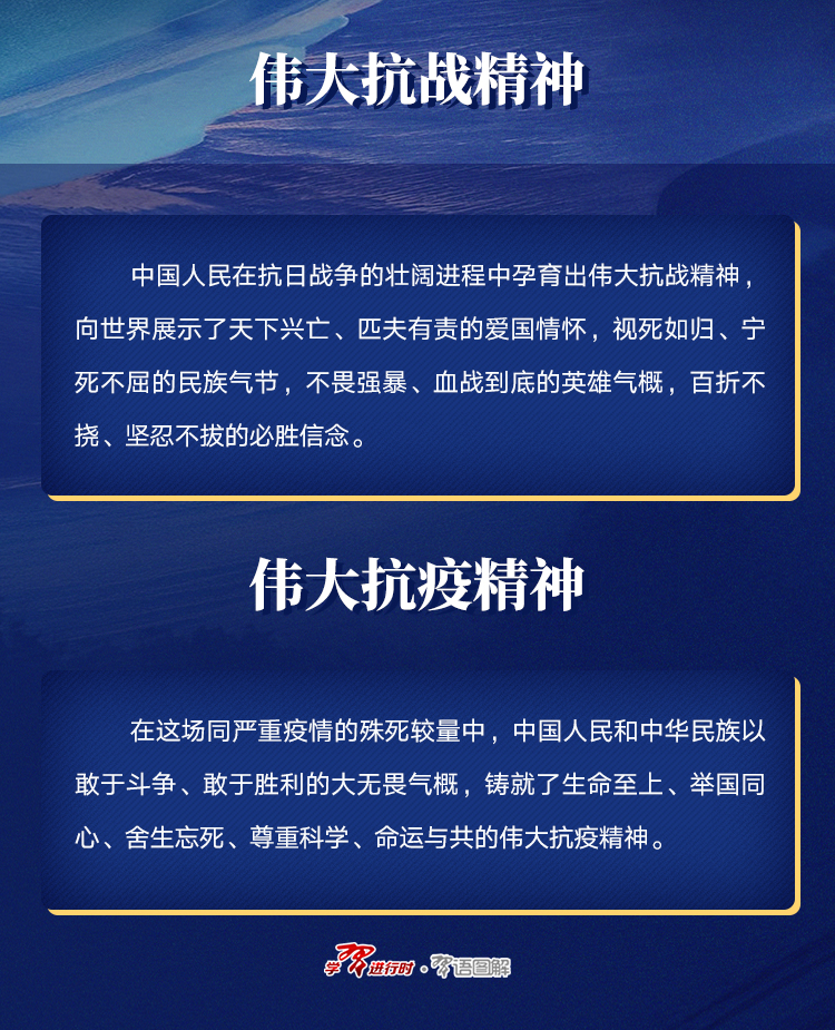 9月3日,習(xí)近平在紀(jì)念中國(guó)人民抗日戰(zhàn)爭(zhēng)暨世界反法西斯戰(zhàn)爭(zhēng)勝利75周年座談會(huì)上強(qiáng)調(diào),偉大抗戰(zhàn)精神,是中國(guó)人民彌足珍貴的精神財(cái)富,將永遠(yuǎn)激勵(lì)中國(guó)人民克服一切艱難險(xiǎn)阻、為實(shí)現(xiàn)中華民族偉大復(fù)興而奮斗。