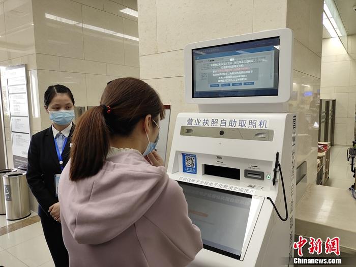 市民正在操作營業(yè)執(zhí)照自助取照機(jī)。中新網(wǎng)記者 張旭 攝