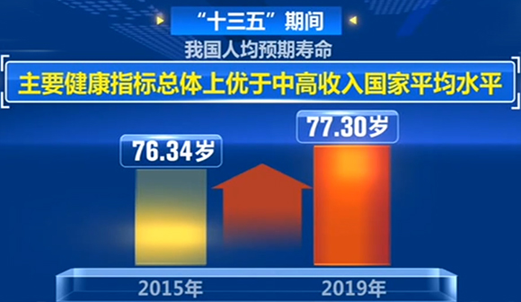央視網(wǎng)消息:“十三五”期間,我國人均預(yù)期壽命從2015年的76.34歲提高到2019年的77.3歲,主要健康指標(biāo)總體上優(yōu)于中高收入國家平均水平。