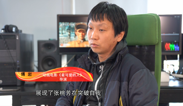 動(dòng)畫(huà)電影《最可愛(ài)的人》導(dǎo)演 傅巖:為了表現(xiàn)張?zhí)曳嫉男睦沓砷L(zhǎng)與變化,我也加入了一些張?zhí)曳紝?duì)他老班長(zhǎng)的一些回憶。運(yùn)用蒙太奇的組合方式展現(xiàn)了張?zhí)曳荚谕黄谱晕,提升自我的過(guò)程中,心理素質(zhì)是如何真正達(dá)到一個(gè)很高的水準(zhǔn)。