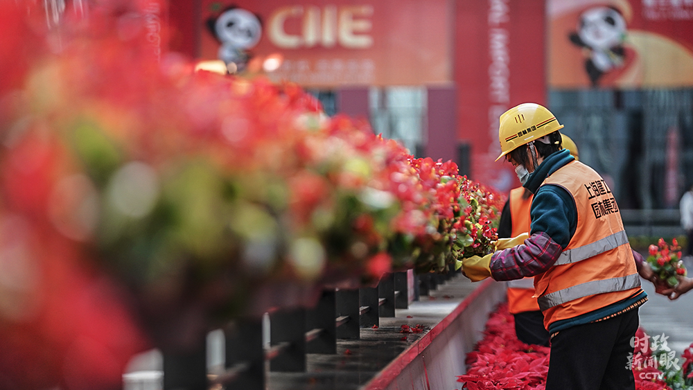 △進(jìn)博會(huì)開幕前,工作人員做最后的整理、布展等工作。(總臺國廣記者李晉拍攝)