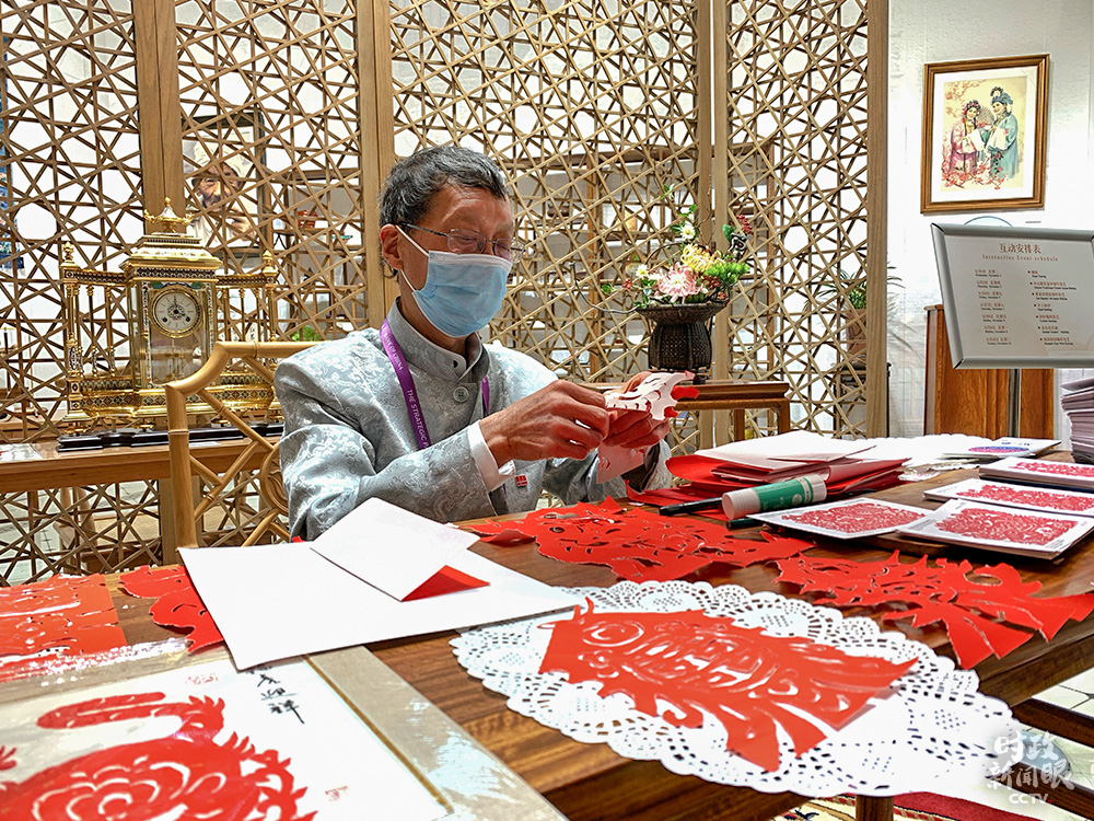 △這是上海市非遺海派撕紙項(xiàng)目代表性傳承人華興富,他可以徒手運(yùn)用撕、挖、摳、鏤等手法技巧,制作出栩栩如生的人像、生肖、窗花等撕紙作品。(總臺央視記者程鋮拍攝)
