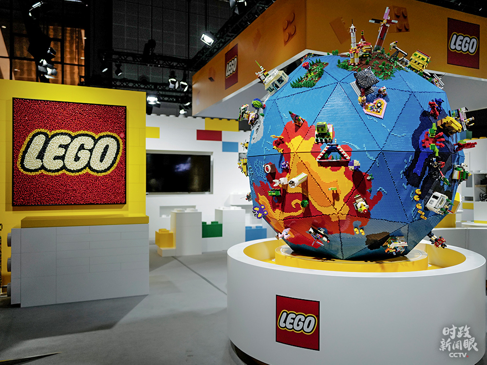 △這是進(jìn)博會(huì)消費(fèi)品展區(qū)的“樂造星球”展品,高2.7米(含底座),共包含62750塊樂高積木顆粒,顆?傊亓窟_(dá)106千克。(總臺國廣記者李晉拍攝)