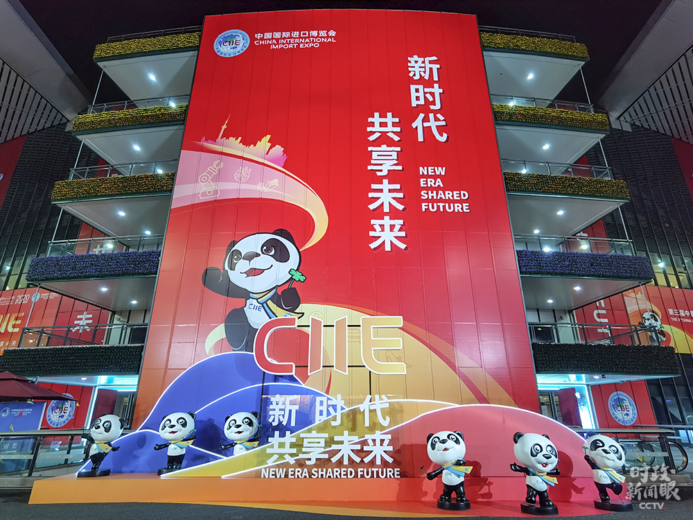 △進(jìn)博會(huì)吉祥物“進(jìn)寶”是亮眼元素。(總臺央視記者王萌萌、國廣記者李晉拍攝)