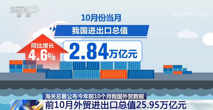 前10個月外貿(mào)進出口總值25.95萬億元 連續(xù)5個月實現(xiàn)正增長