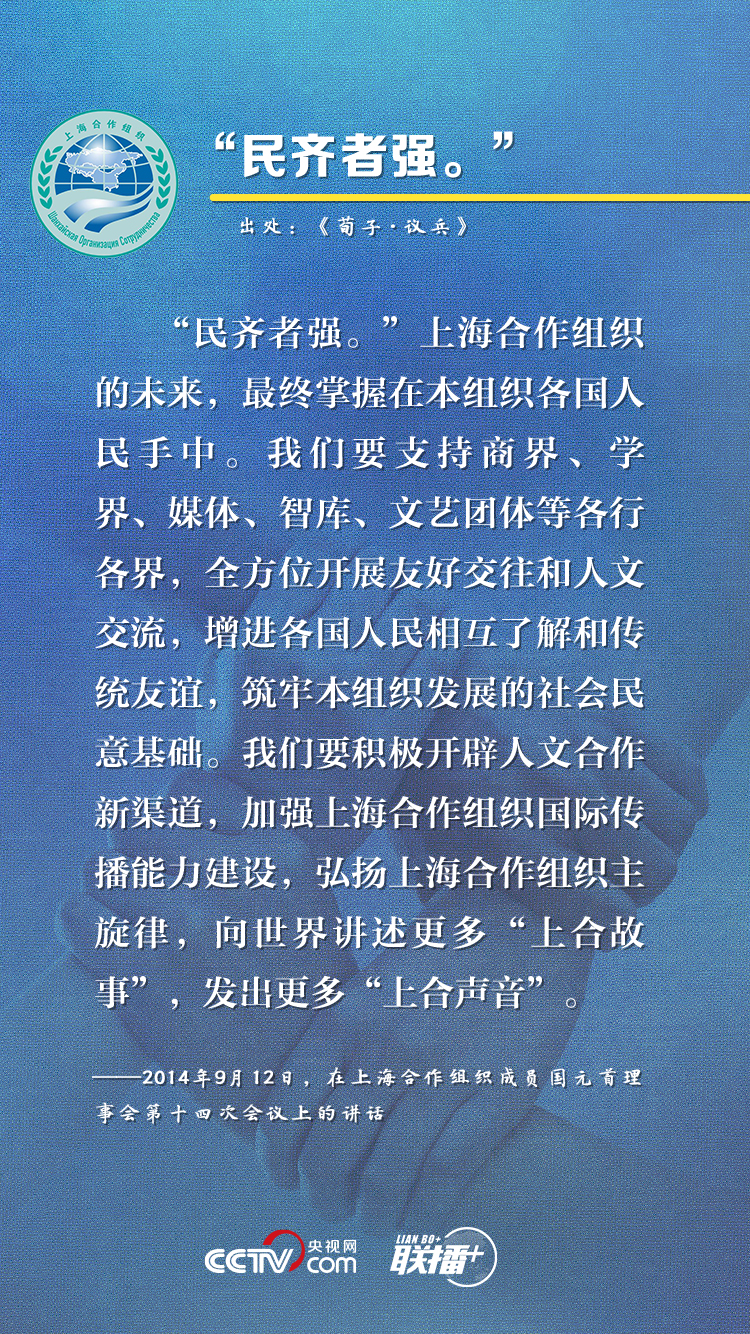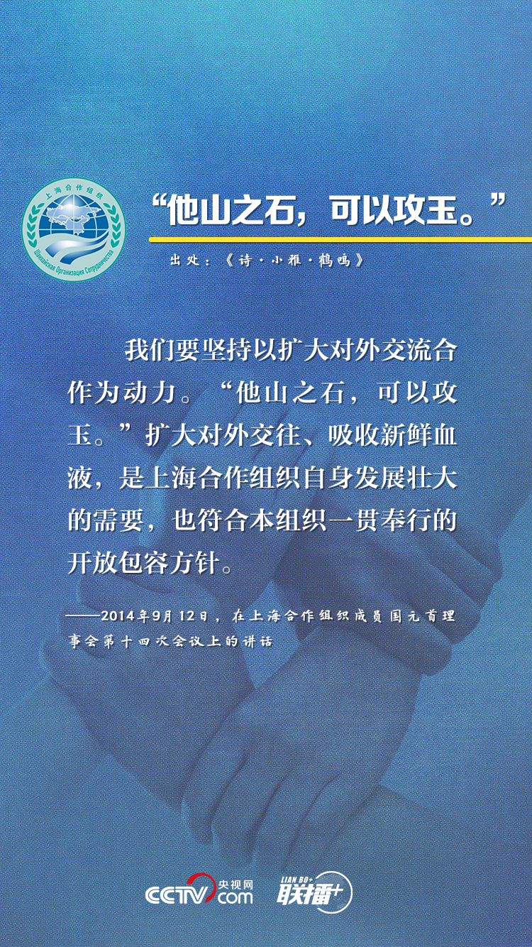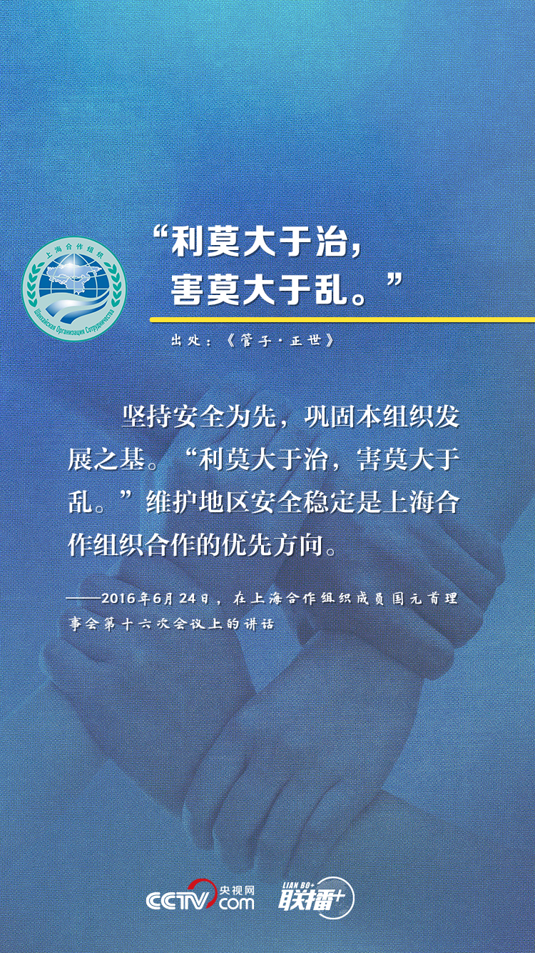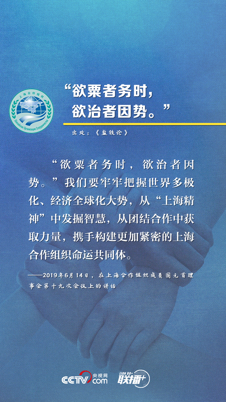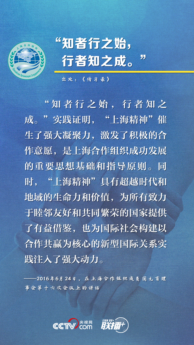 上海合作組織成立19年來,始終保持健康穩(wěn)定發(fā)展勢(shì)頭,成功探索出一條新型區(qū)域組織的合作與發(fā)展道路。近年來,習(xí)近平主席在參加上合組織峰會(huì)時(shí)多次引用典故,就上合組織發(fā)展提出建議,這也成為他對(duì)上合之“合”的生動(dòng)闡釋。央視網(wǎng)《聯(lián)播+》欄目特對(duì)相關(guān)內(nèi)容進(jìn)行梳理,與您一起感受“上海精神”的強(qiáng)勁動(dòng)力。