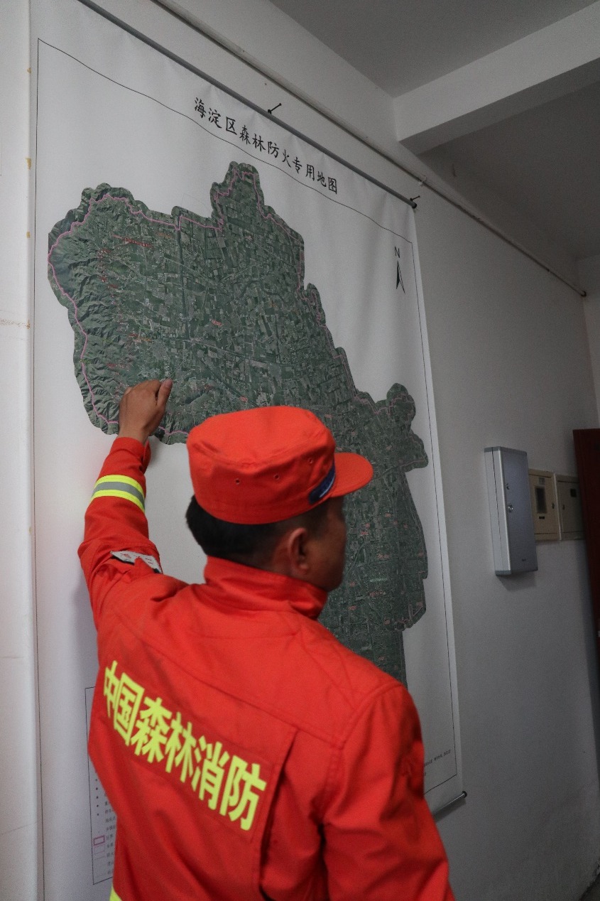 宋博介紹海淀區(qū)森林防火情況(王晗/攝)