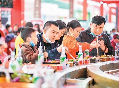 10月17日,食客在重慶國(guó)際博覽中心第十二屆火鍋美食文化節(jié)現(xiàn)場(chǎng)品嘗重慶火鍋。