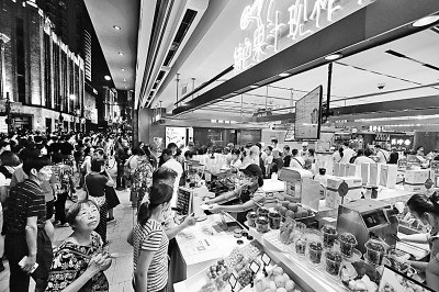 市民、游客在上海南京路步行街東拓段新開通街道邊的商店購物。新華社發(fā)
