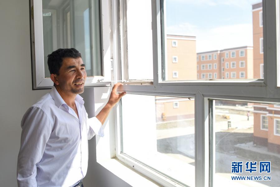 新疆葉城縣棋盤鄉(xiāng)居民來到葉城縣易地扶貧搬遷物流園區(qū)安置點查看新房(2019年8月19日攝)。新華社記者 丁磊 攝