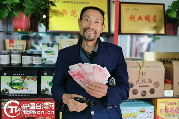 屈扶庭拿到新賣的吊瓜子錢,感到很開心。(中國臺(tái)灣網(wǎng) 李寧 攝)