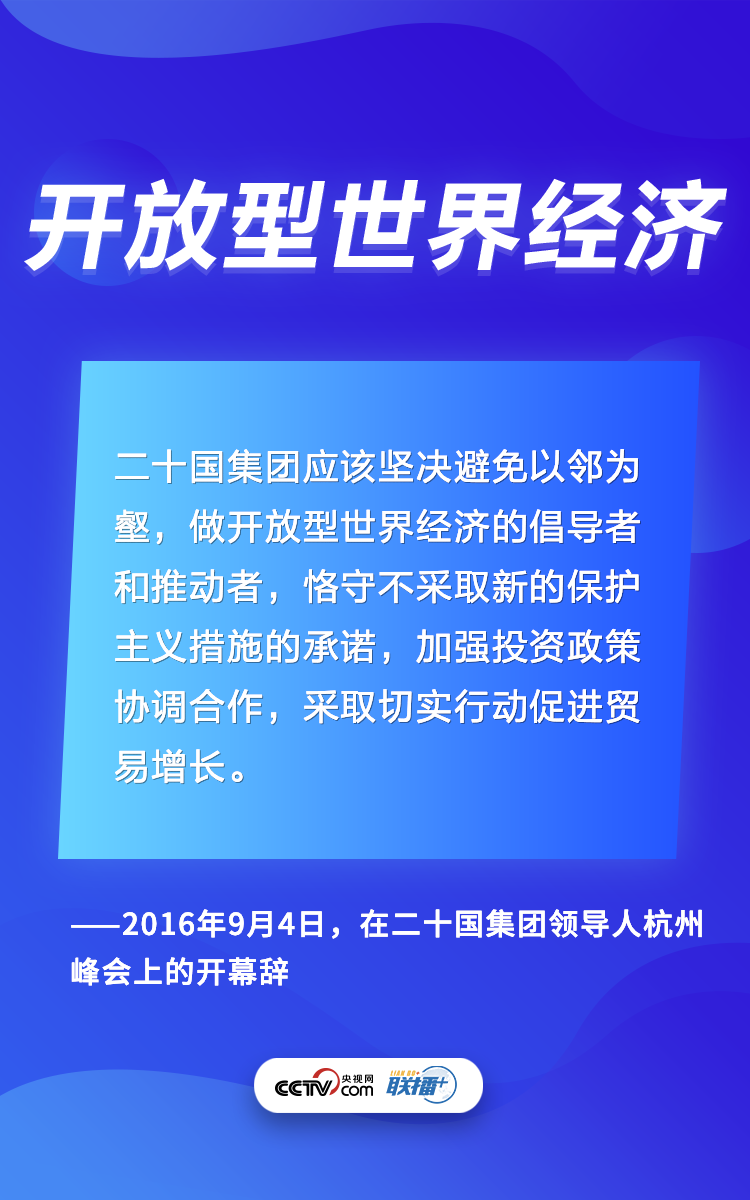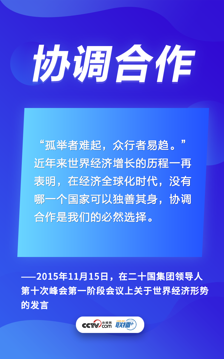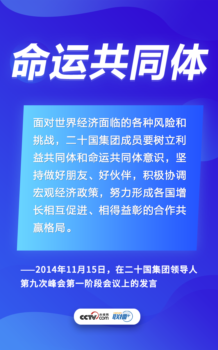 二十國集團(tuán)是國際經(jīng)濟(jì)合作主要論壇。多年來,習(xí)近平主席在峰會(huì)講話中倡議各國聯(lián)手,齊心協(xié)力應(yīng)對(duì)世界經(jīng)濟(jì)和全球治理的各種問題。央視網(wǎng)《聯(lián)播+》梳理習(xí)主席相關(guān)論述,與您一起學(xué)習(xí)體會(huì)。