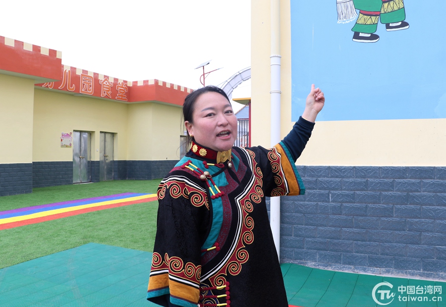 灑拉地坡鄉(xiāng)幼兒園園長(zhǎng)阿的子史向記者講述園區(qū)概況。(中國(guó)臺(tái)灣網(wǎng) 尹賽楠 攝)