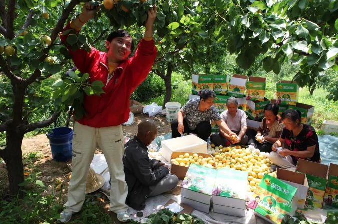 白水大杏成為繁峙縣脫貧致富的好產(chǎn)業(yè)。圖為果農(nóng)正在采摘包裝大杏。喬偉攝