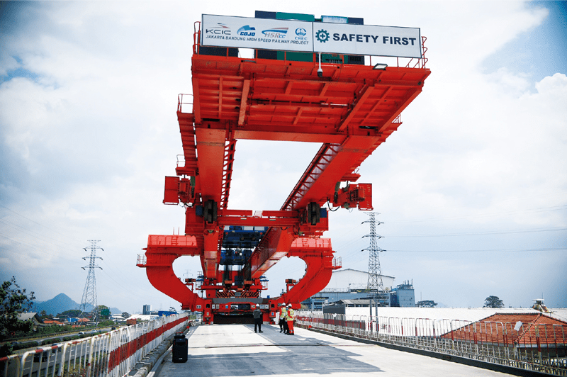 印度尼西亞雅萬高鐵項(xiàng)目是“一帶一路”倡議的標(biāo)志性工程和印尼國家戰(zhàn)略項(xiàng)目。圖為2020年9月3日,雅萬高鐵4號梁場進(jìn)行架梁作業(yè)。新華社發(fā) 祖卡南/攝