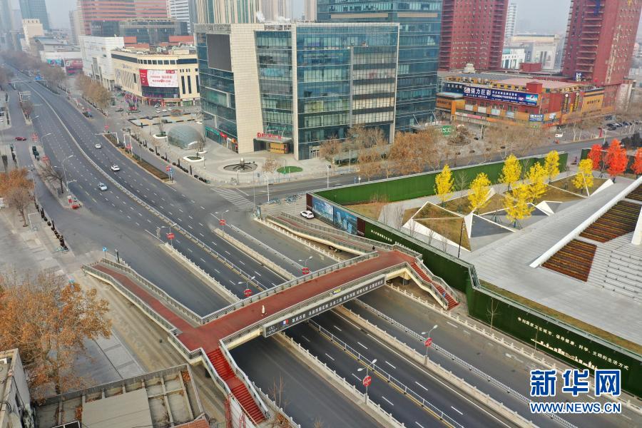 這是1月16日拍攝的石家莊中山西路(無人機(jī)照片)。