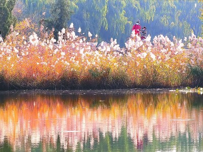 游客在圓明園欣賞搖曳多姿的蘆葦花。新華社發(fā)
