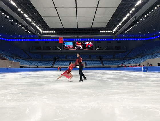 △左邊是花樣滑冰雙人滑選手隋文靜、韓聰?shù)谋荣惙,兩位選手在“2020年國際滑聯(lián)花樣滑冰四大洲錦標(biāo)賽”中奪冠。(總臺(tái)央視記者范一鳴拍攝)