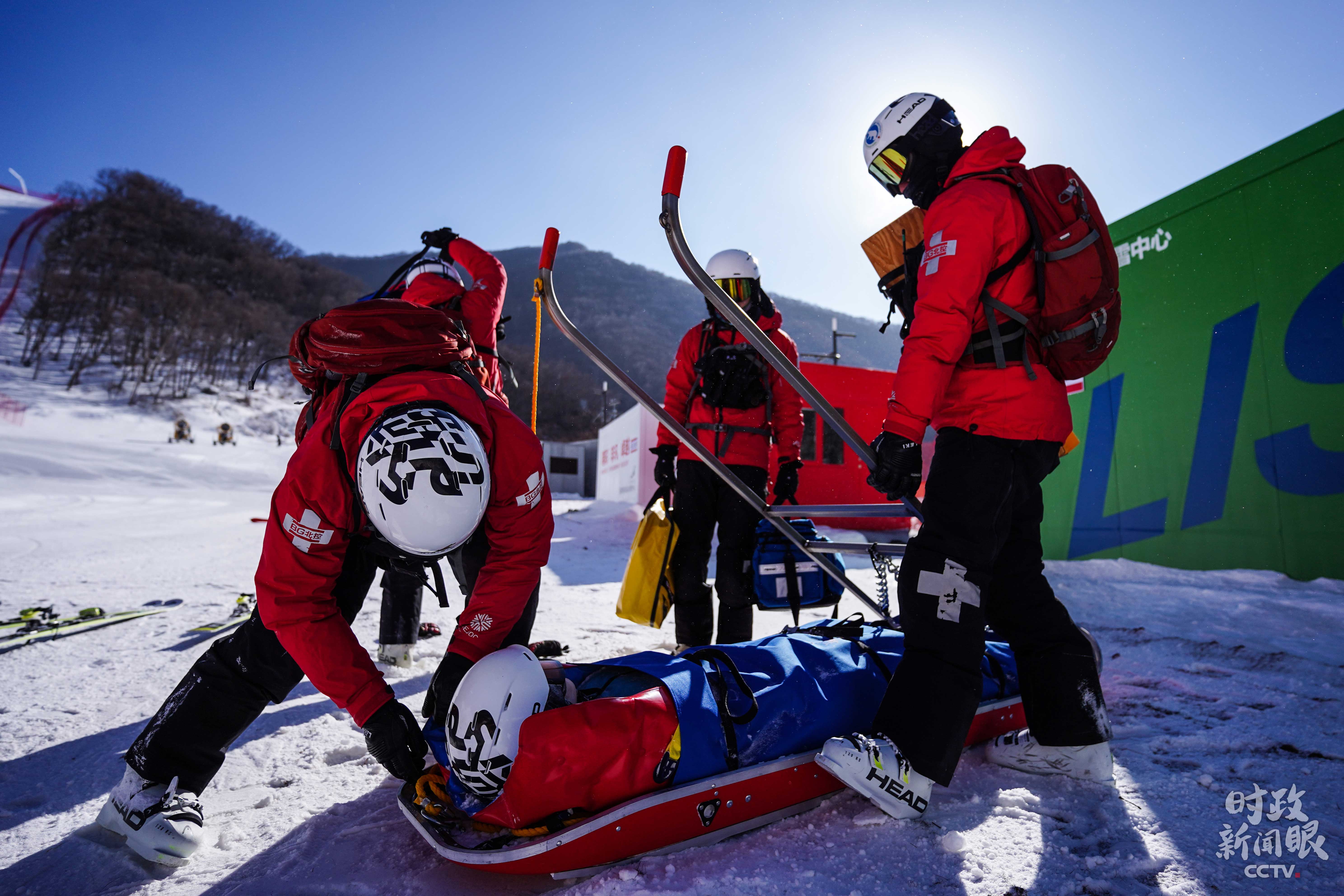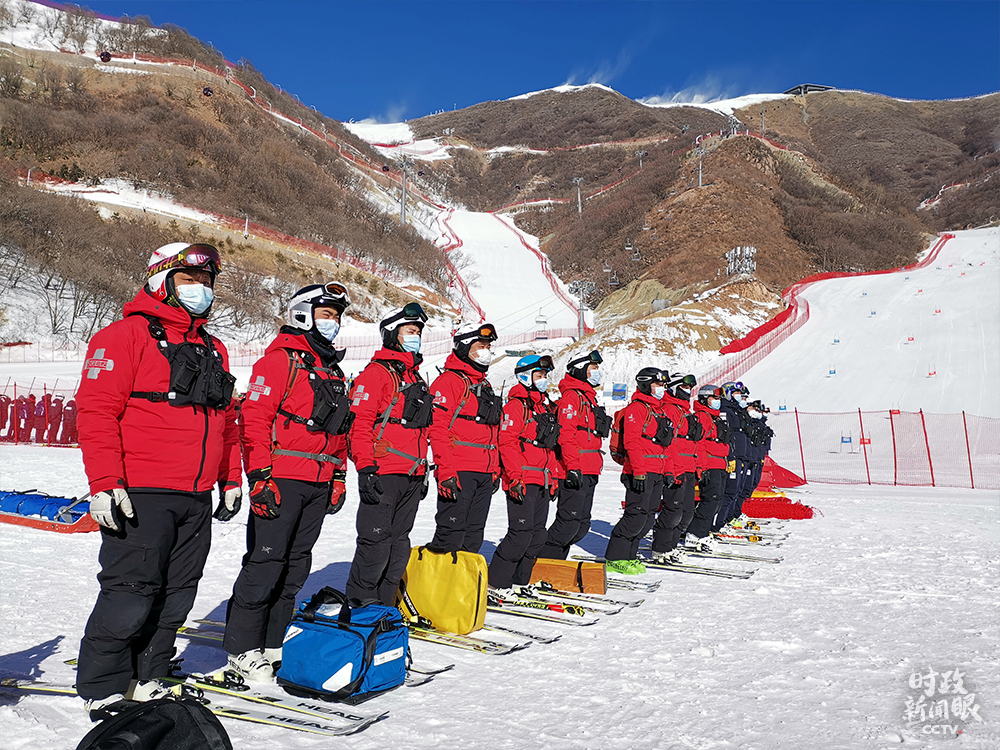 △國家高山滑雪中心救援隊(duì)正在演練。(總臺(tái)央視記者楊立峰、國廣記者李晉拍攝)