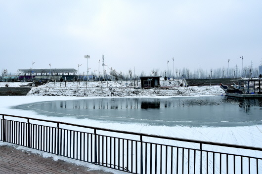 拉齊尼·巴依卡勇救落水兒童的湖面。 本報記者張曼攝
