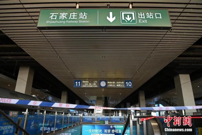 1月9日,石家莊火車站月臺前往出站口的通道被封閉。中新社記者 侯宇 攝