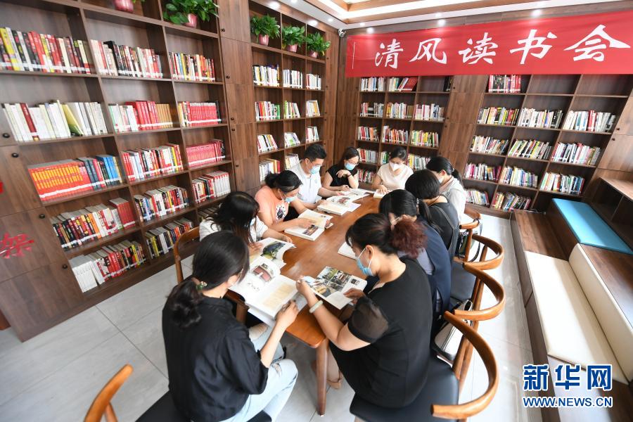 2020年6月23日,河北省棗強(qiáng)縣紀(jì)委監(jiān)委組織部分單位黨員干部,在縣文化廣電和旅游局舉行“清風(fēng)讀書會(huì)”。新華社記者 李曉果 攝