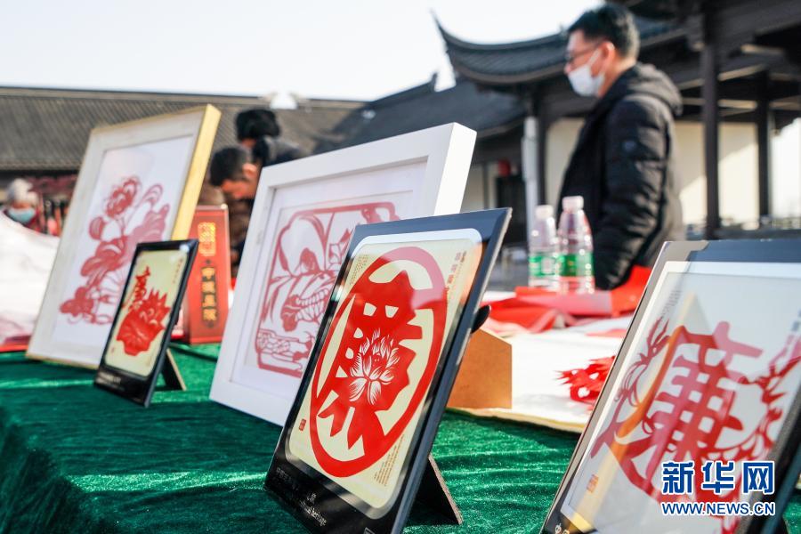 1月14日,江蘇省連云港市灌云縣紀(jì)委監(jiān)委在當(dāng)?shù)赝d鎮(zhèn)梅園文化廣場舉行廉政文化進(jìn)鄉(xiāng)村活動(dòng)。這是在活動(dòng)現(xiàn)場拍攝的廉政主題剪紙。 新華社記者 李博 攝