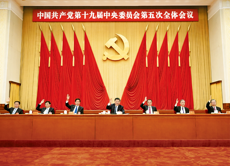 中國(guó)共產(chǎn)黨第十九屆中央委員會(huì)第五次全體會(huì)議,于2020年10月26日至29日在北京舉行。中央委員會(huì)總書(shū)記習(xí)近平作重要講話。新華社記者 鞠鵬 攝