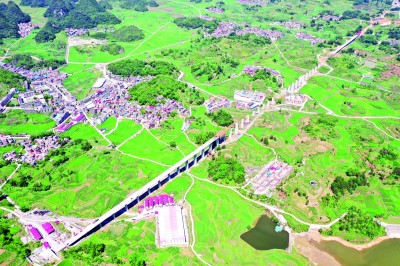 貴南高鐵是國家“十三五”交通扶貧16個(gè)重點(diǎn)鐵路項(xiàng)目之一。圖為廣西環(huán)江毛南族自治縣下南鄉(xiāng)境內(nèi)的貴南高鐵部分路段。新華社發(fā)