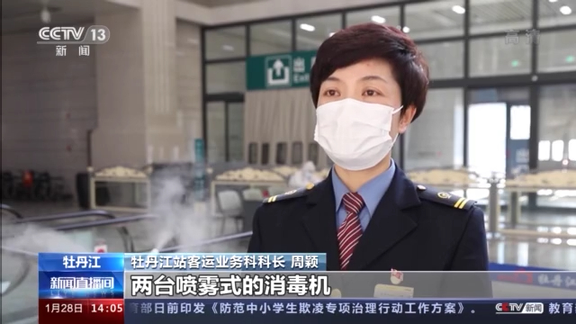 牡丹江站客運業(yè)務(wù)科科長 周穎:我們在進站扶梯處增設(shè)了兩臺噴霧式的消毒機,由原來的人工定時對扶梯消毒變成了現(xiàn)在的實時消殺。