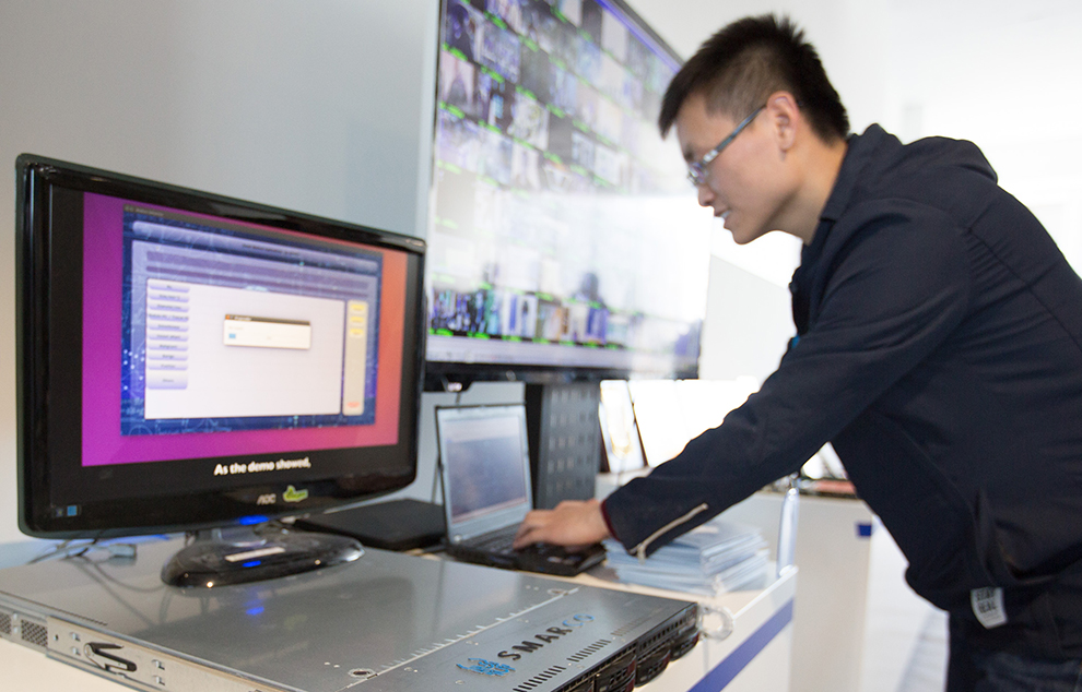 △工作人員在現(xiàn)場演示高通量人工智能一體機(jī)的實(shí)際應(yīng)用。