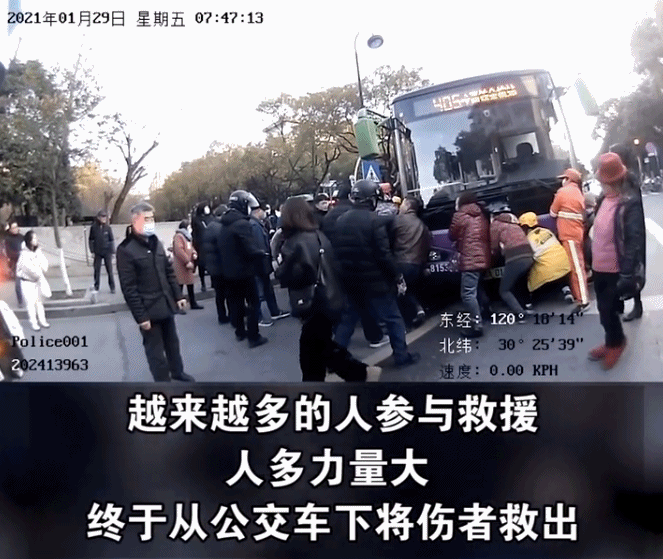 暖心!浙江杭州一七旬老人被卷公交車底 熱心群眾抬車救人
