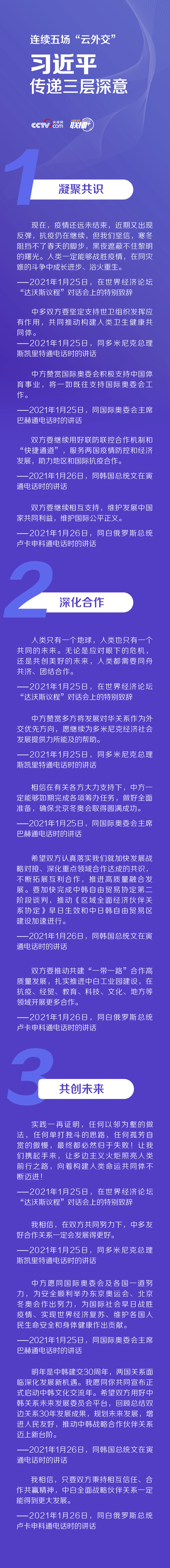 聯(lián)播+1月25日以來,習(xí)近平主席再次開啟繁忙的“云外交”模式,先后在北京以視頻方式出席世界經(jīng)濟(jì)論壇“達(dá)沃斯議程”對(duì)話會(huì),同多米尼克總理斯凱里特、國際奧委會(huì)主席巴赫、韓國總統(tǒng)文在寅、白俄羅斯總統(tǒng)盧卡申科通電話。