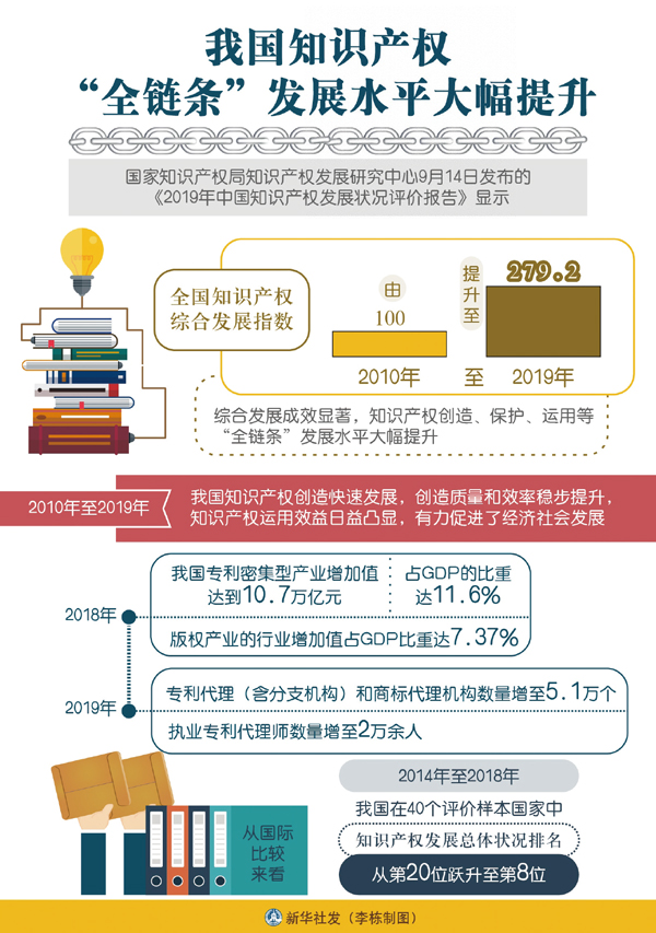 ——在加強(qiáng)頂層設(shè)計方面,黨的十九屆五中全會提出,加強(qiáng)知識產(chǎn)權(quán)保護(hù),大幅提高科技成果轉(zhuǎn)移轉(zhuǎn)化成效。中央全面深化改革領(lǐng)導(dǎo)小組先后審議通過《知識產(chǎn)權(quán)綜合管理改革試點(diǎn)總體方案》、《關(guān)于加強(qiáng)知識產(chǎn)權(quán)審判領(lǐng)域改革創(chuàng)新若干問題的意見》等重要文件,國務(wù)院印發(fā)《深入實(shí)施國家知識產(chǎn)權(quán)戰(zhàn)略行動計劃(2014—2020年)》、《關(guān)于新形勢下加快知識產(chǎn)權(quán)強(qiáng)國建設(shè)的若干意見》等重要文件,知識產(chǎn)權(quán)保護(hù)工作的頂層設(shè)計日益完善。