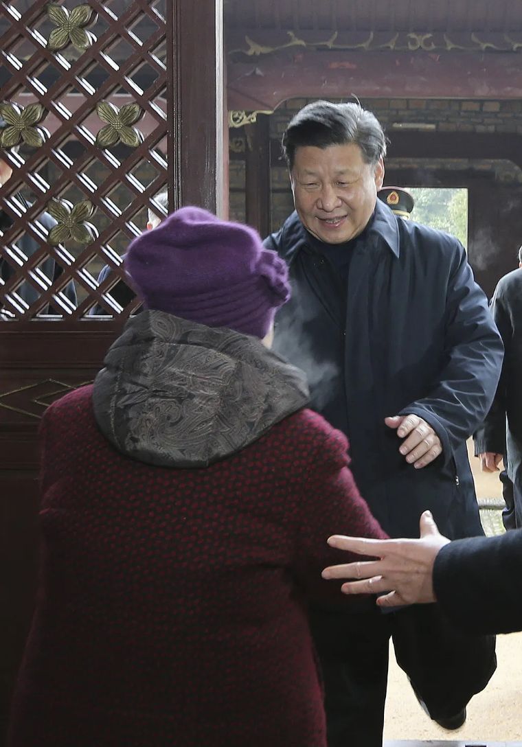 ↑2016年2月2日,習近平在江西井岡山八角樓革命舊址群看望革命烈士后代和先進人物代表,同他們親切交談。