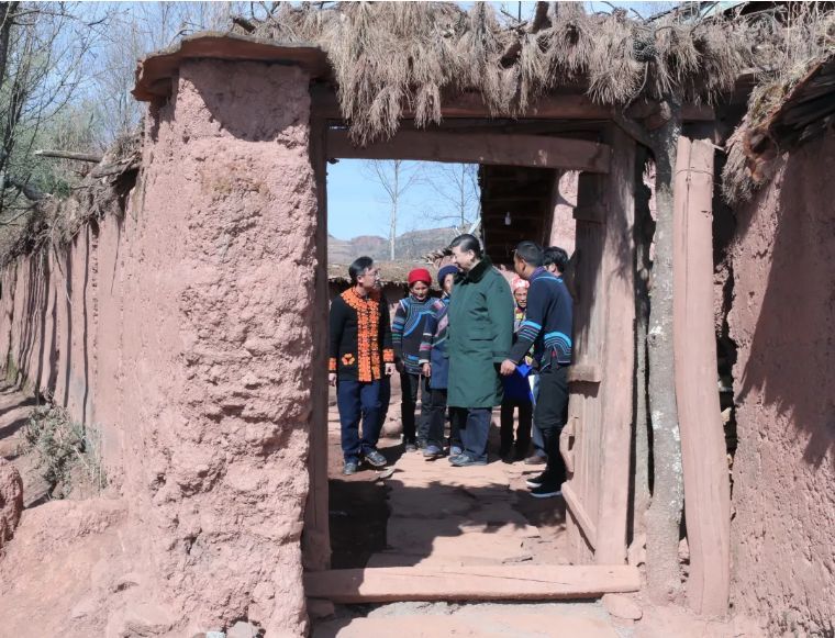 ↑2020年1月19日,習近平在云南騰沖市清水鄉(xiāng)三家村中寨司莫拉佤族村村民李發(fā)順家察看,了解居住環(huán)境。