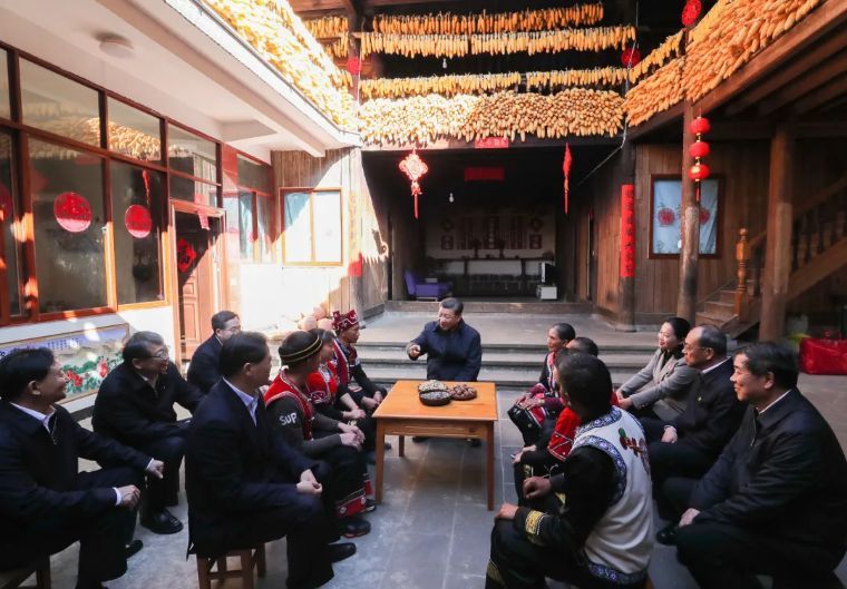 ↑2020年1月19日,習近平在云南騰沖市清水鄉(xiāng)三家村中寨司莫拉佤族村,同村民李發(fā)順一家聊家常,詳細詢問脫貧情況。
